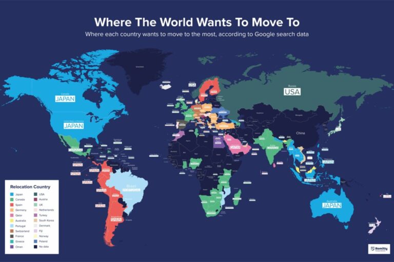 En Remitly queríamos saber más. Así que hemos indagado y analizamos los datos de búsqueda global para descubrir los destinos de reubicación más populares para los ciudadanos de países de todo el mundo. Esto es lo que hemos encontrado.