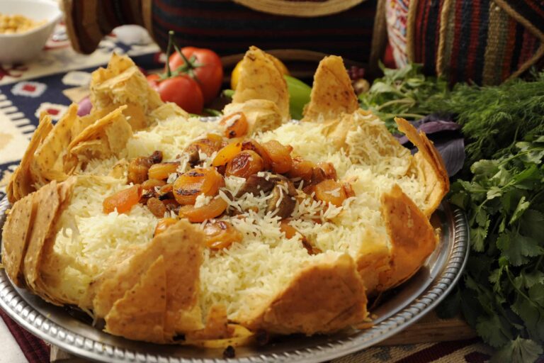 - Superpose et fais cuire: Place un morceau de lavash ou de pain plat au fond d’une casserole. Ajoute une couche de riz, puis une couche du mélange de viande et de fruits secs. Répète les couches, en terminant par une couche de riz. Fais cuire à feu doux jusqu’à ce que ce soit cuit.
