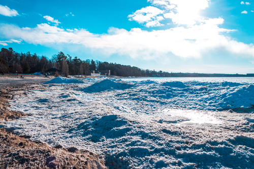 The Snow Belt covers the Great Lakes region, including New York, Ohio, Michigan, Minnesota, Wisconsin, Indiana, Illinois, and Pennsylvania. The Great Lakes stay warmer than the surrounding land in winter, creating lake-effect snow — highly localized snowfall that blankets communities on the southern and eastern shores. Winter here is a source of regional pride, celebrated with ice fishing, hockey, and cozy community traditions.