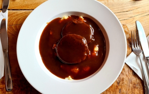 Brown sauce is a tangy, slightly sweet condiment made from tomatoes, dates, tamarind, and spices. In Scotland, it’s commonly served with full Scottish breakfasts, bacon rolls, square sausage, and savory pies. HP Sauce is the most recognized brand, though Scottish varieties exist.