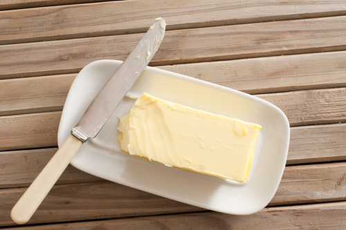 Real butter is standard in Scottish kitchens and is often kept at room temperature in a butter dish for easy spreading on toast. Margarine is less common here than in some other countries.