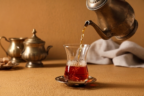 Turkey actually tops the global charts for tea consumption per capita, with the average person drinking several cups a day, specifically, çay. Served in tulip-shaped glasses, it’s strong, dark, and usually sweetened with sugar. Milk is never added.