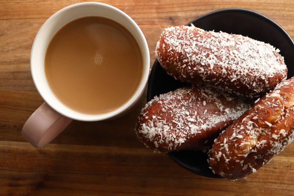 Meanwhile, Cape Malay koesisters are rooted in the Cape Malay community, spiced with cinnamon, cardamom, and aniseed, and are softer, rounder, and less sweet. They are typically rolled in coconut after being soaked in syrup.