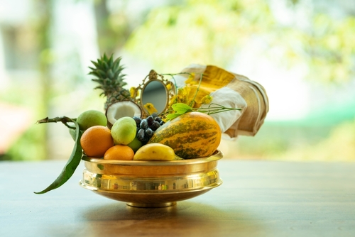 The most iconic part of the festival is the Vishu Kani. “Kani” translates to “that which is seen first.” It is a carefully arranged display of auspicious items that family members look at as soon as they wake up. Setting this up in the US might require a trip to a local Indian grocery store, but the effort is highly rewarding.